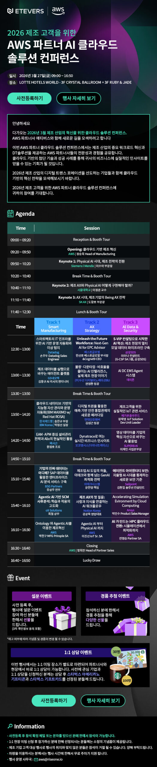 📢 2026 제조 고객을 위한 AWS 파트너 AI 클라우드 솔루션 컨퍼런스