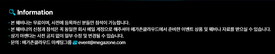 – 연락처 : 02-2108-9171, event@megazone.com