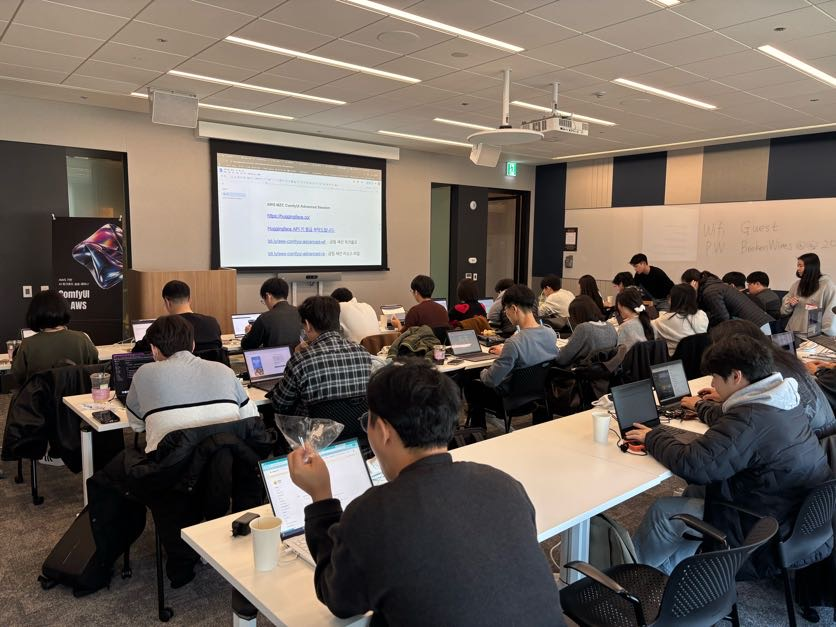 이번 행사는 단순한 이론 전달을 넘어, 참가자들이 직접 AWS 환경에서 인스턴스를 생성하고 ComfyUI를 구동해보는 핸즈온(Hands-on) 실습 위주로 진행되었습니다.