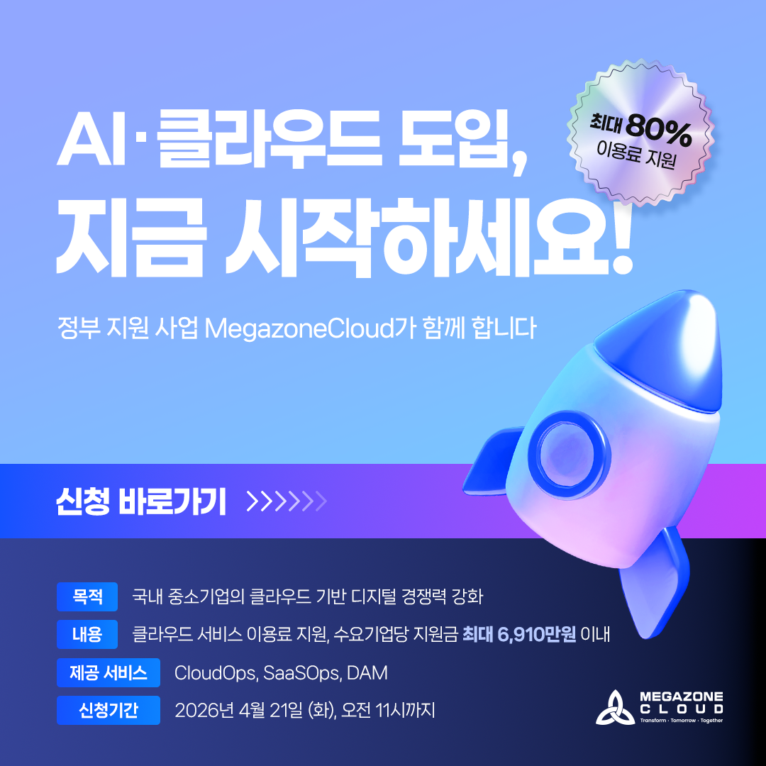 정부지원 80% + 메가존클라우드 전문가 컨설팅! 2026 중소기업 클라우드 보급사업 [~4/21 마감]