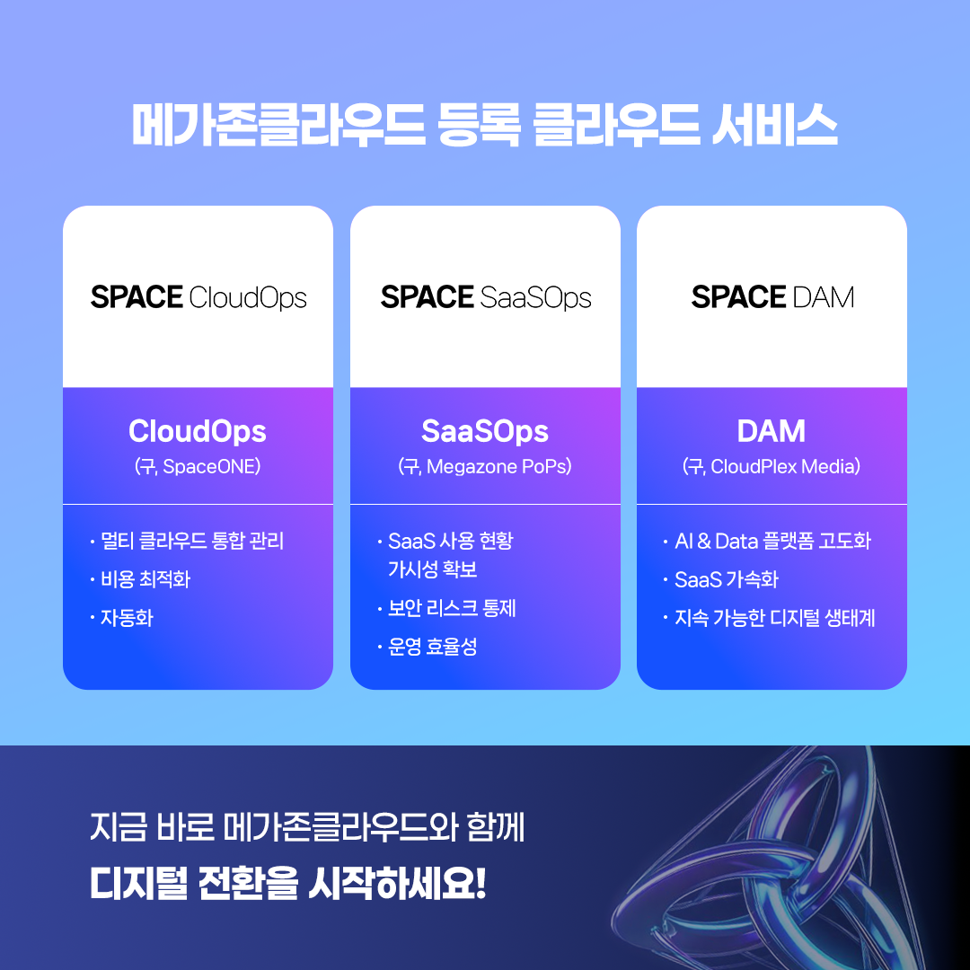 메가존클라우드는 이번 사업을 통해 기업의 운영 효율과 지속 가능성을 높이는 차세대 클라우드 관리 솔루션 3종을 제공합니다.