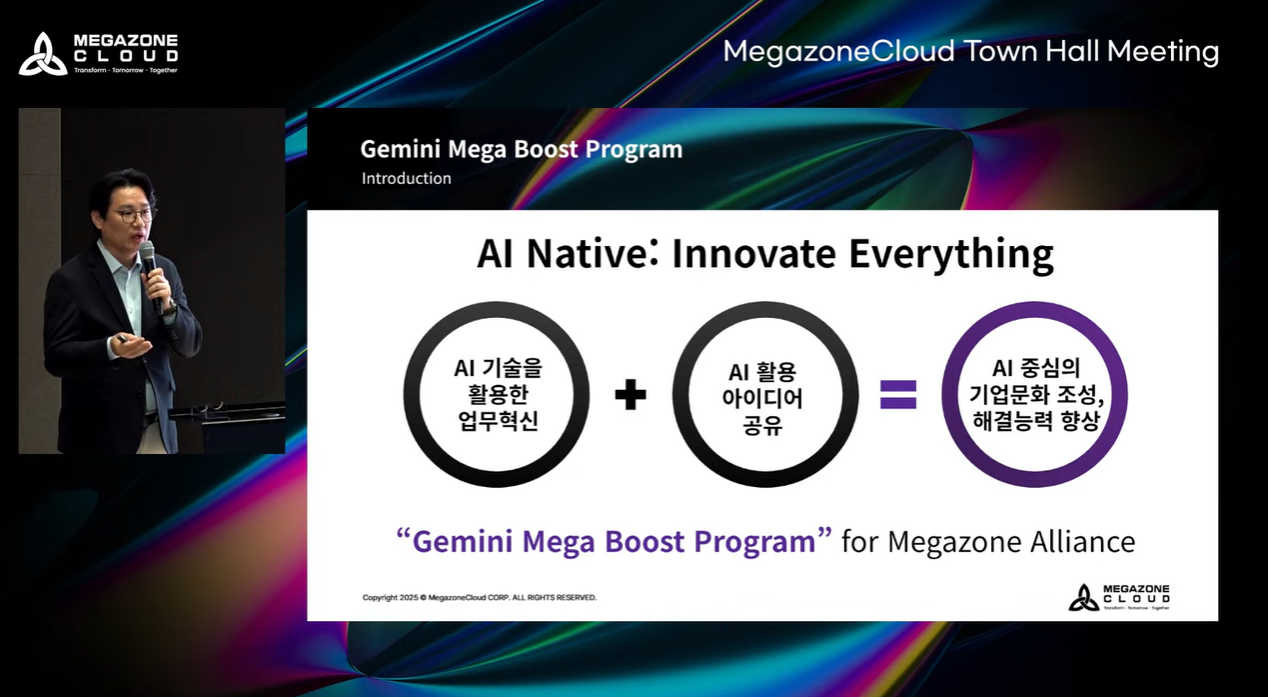 디지털 전환(DX)이 필수가 된 시대를 지나, 이제는 인공지능이 업무의 중심이 되는 AI 전환(AX)의 시대입니다. 메가존 얼라이언스는 지난 5월, 이 거대한 변화의 흐름에 단순히 올라타는 것이 아니라 흐름을 주도하기로 결심했습니다. 구글의 강력한 AI, Gemini와 함께 말이죠.