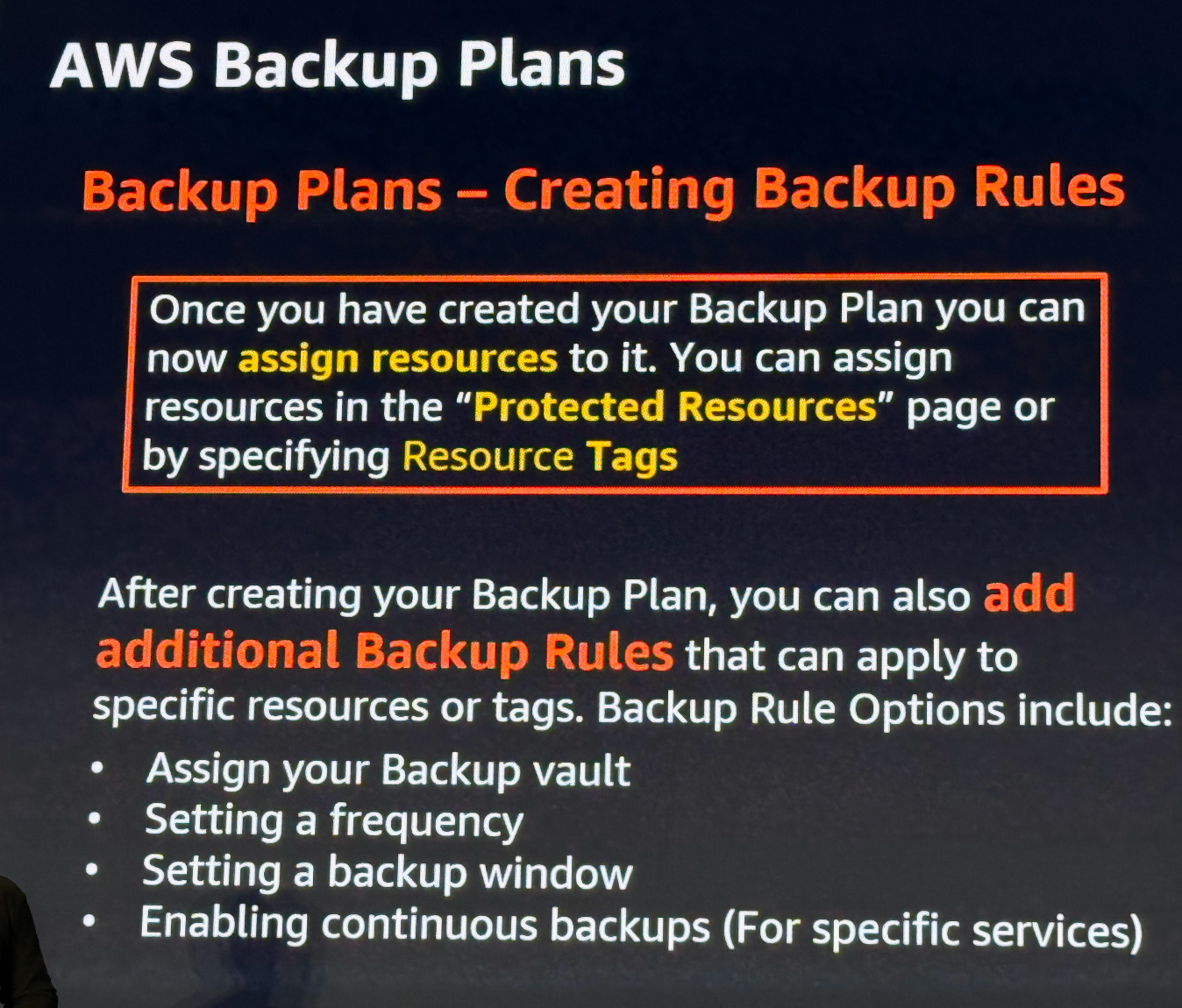 이 중, TAG 기반 방식은 대규모 환경에서 필수적입니다. 백업 플랜 내에서는 백업 규칙(Backup Rules) 을 구성하여 특정 리소스나 태그에 대한 정책을 구체화할 수 있습니다.