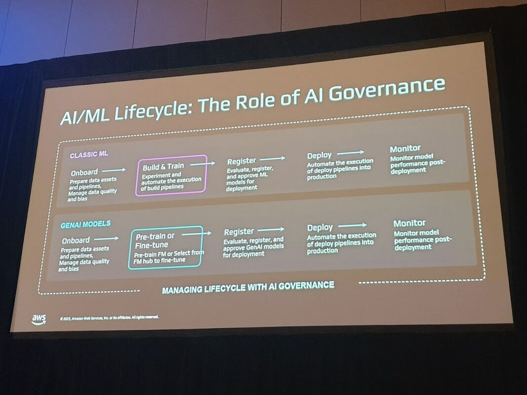 많은 AI 프로젝트 실패의 근본 원인은 모델이 잘못 구축된 것이 아니라 거버넌스 부족에 있습니다. 클래식 ML이든 GenAI 모델이든 온보딩, 훈련 또는 파인튜닝, 등록, 배포, 모니터링의 5단계 프로세스를 거치는데, 모든 단계에서 AI 거버넌스가 필요합니다.