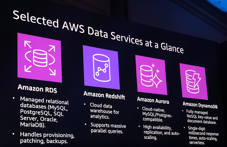 특히 RDS, Redshift, Aurora, DynamoDB 각각에 특화된 최적화 전략이 제시되어, 실무 적용 가능성이 높은 세션이었습니다.