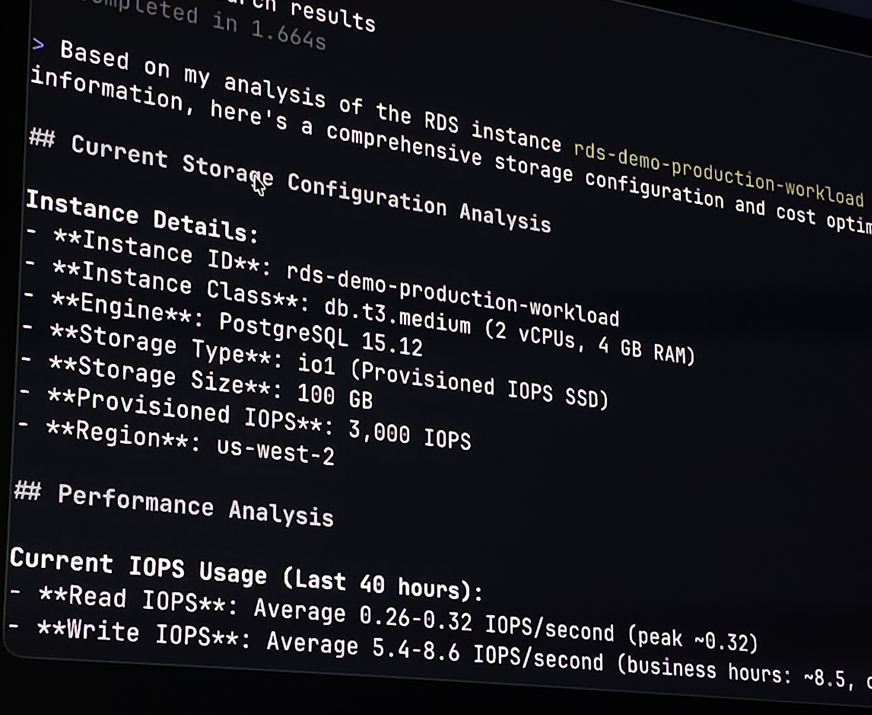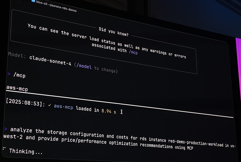 세션에서는 CloudWatch와 MCP(Model Context Protocol) 서버를 통합하여 실시간 메트릭을 분석하고, 이를 기반으로 자동 최적화 권장사항을 생성하는 구현 방식이 소개되었습니다. 이러한 구조를 통해 인스턴스 크기 조정, 스토리지 확장, 보존 기간 변경과 같은 반복 업무를 자동화할 수 있다고 안내되었습니다.