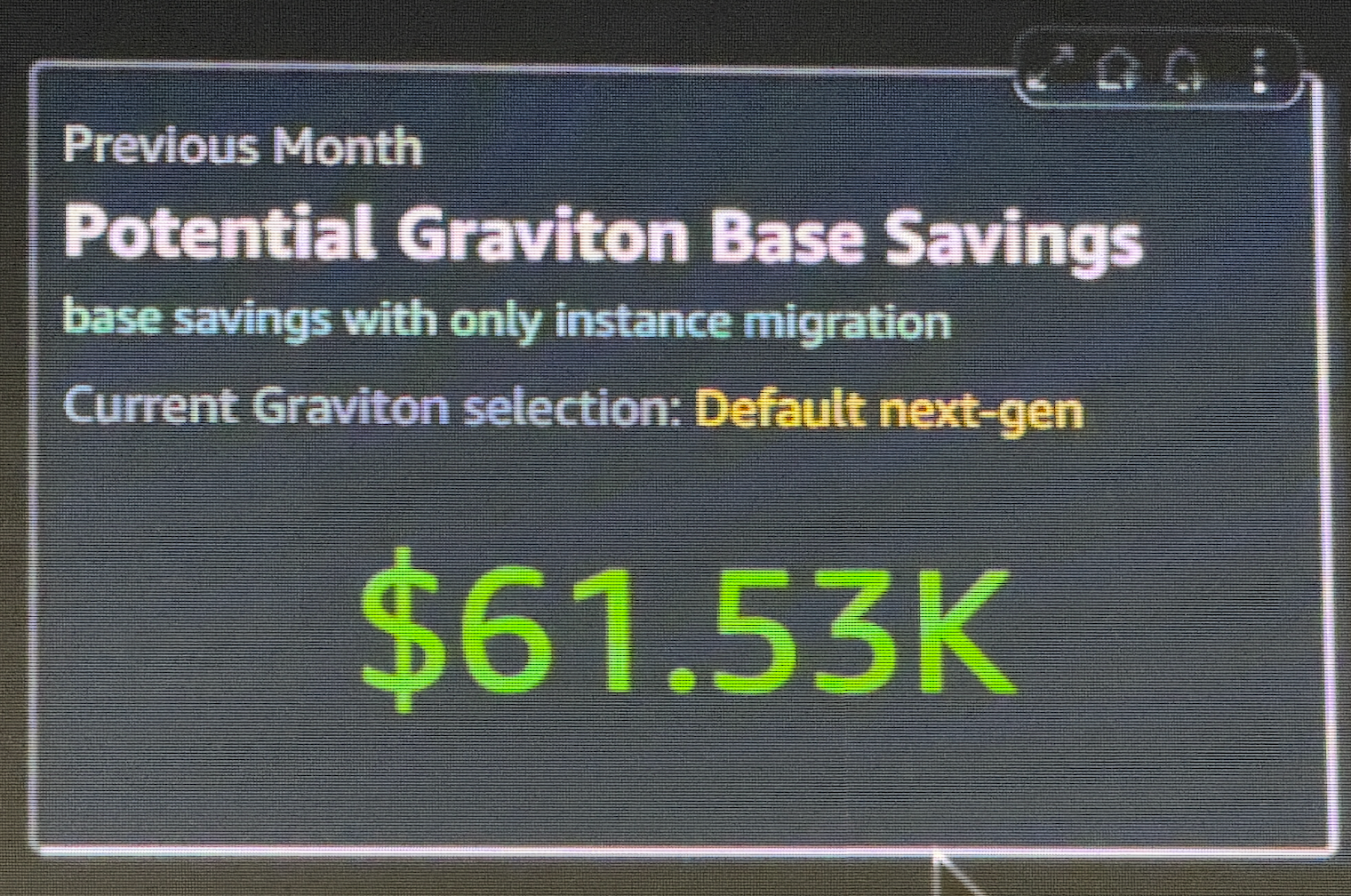 AWS는 이러한 문제를 해결하기 위해 Graviton Savings Dashboard를 제공합니다.