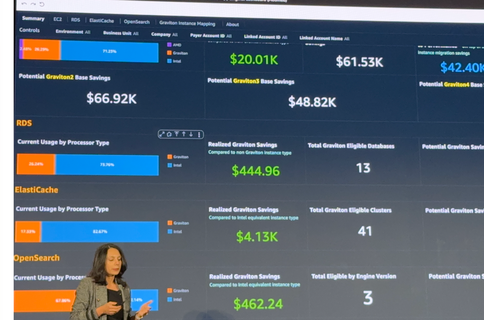 대시보드를 활용하면 “어떤 워크로드를 언제 Graviton으로 이전하면 가장 큰 비용 절감을 달성할지” 정확하게 판단할 수 있음을 보여주었습니다.