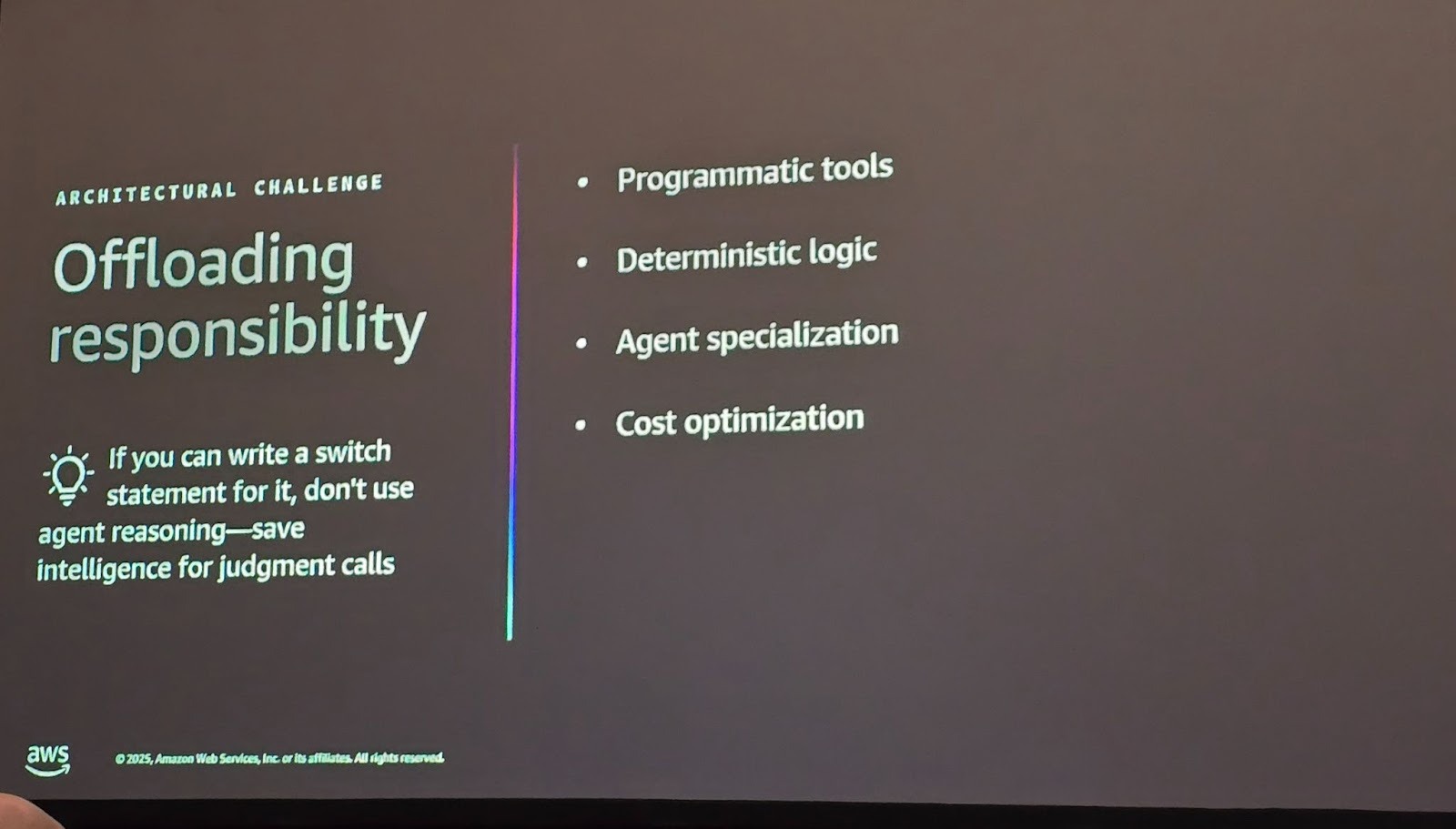 해당 세션에서는 기존의 비효율적인 광고 입찰(RFP) 프로세스를 멀티 에이전트 시스템으로 자동화하는 아키텍처를 다룹니다. Amazon Bedrock Agent Core와 Strands SDK를 활용하여 통제된 유연성(Controlled Flexibility)을 구현하고, 에이전트의 메모리 한계(Context Window)를 극복하는 데이터 관리 전략 및 비용 효율적인 툴 활용법을 소개합니다.