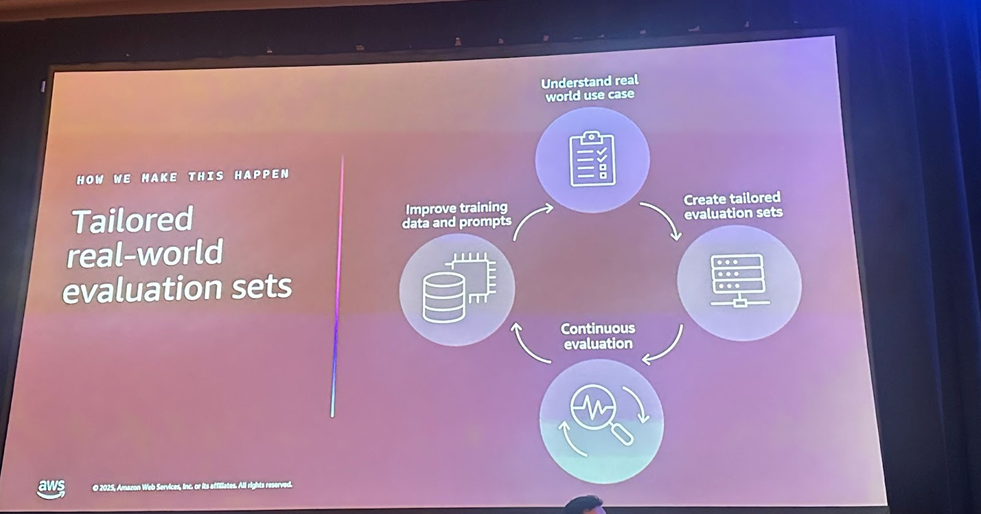 이번 세션을 통해, 단순 벤치마크 성능만으로는 실제 업무 환경에서 모델을 평가하기 어렵다는 점과 이를 극복하기 위한 현실 기반 평가 시스템의 필요성을 느꼈습니다. Nova 2 모델군은 다양한 실제 사용 사례에서 이전 최고 모델을 능가하는 성능을 보여주었고, Nova Forge를 활용한 맞춤형 모델 구축은 최대 21% 성능 향상이라는 의미 있는 결과를 도출했습니다. 개인적으로는 분류 기반 업무에서의 정밀도 개선과 맞춤형 AI 개발 가능성이 흥미로웠으며, 앞으로 기업 고객의 실제 업무 문제 해결에 큰 도움이 될 것으로 기대합니다.