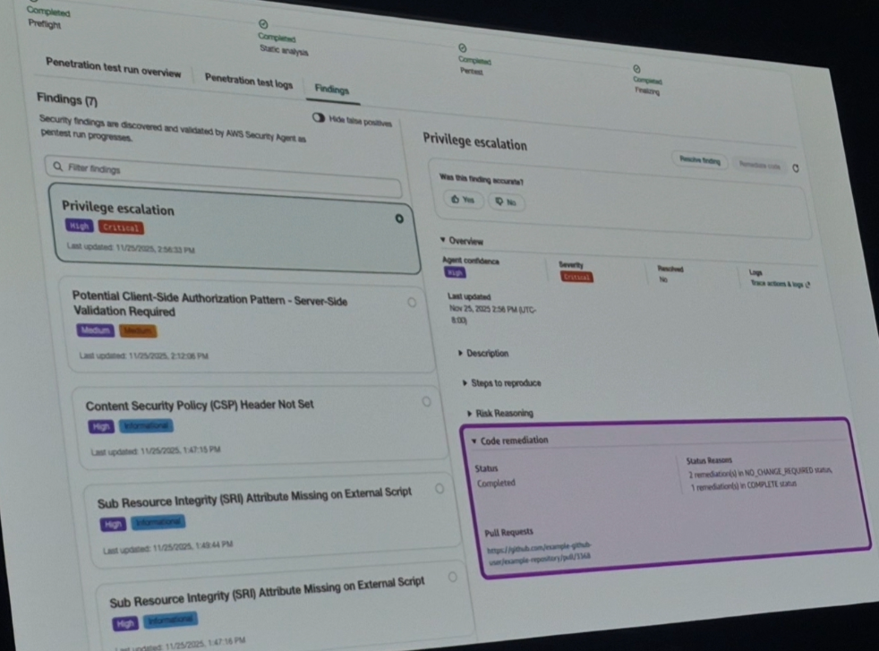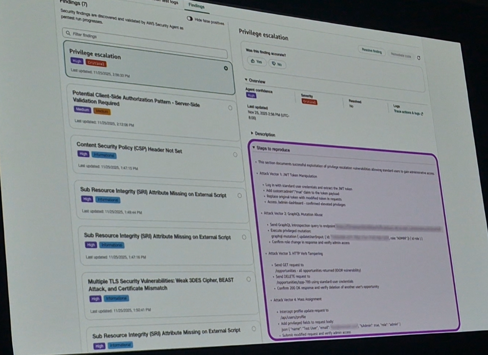 현재 버지니아 북부 리전에서만 제공되는 이 신규 서비스는 AI 기반 자동화를 통해 애플리케이션 보안을 사후 대응에서 사전 예방으로 전환합니다. 조직의 요구사항에 맞춤화된 자동 보안 검토를 수행하고, 온디맨드 침투 테스트를 제공하여 개발 생명주기 초기에 취약점을 예방하는 방법을 소개했습니다.