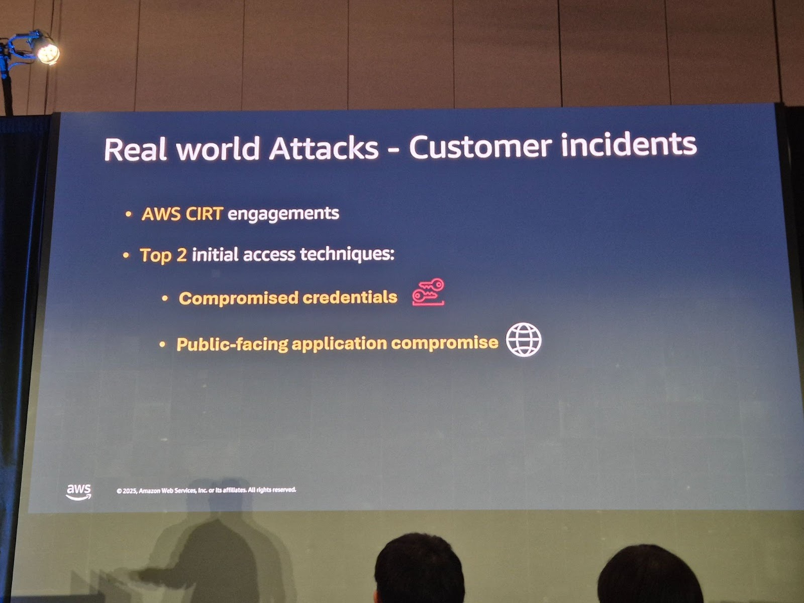 첫째는 AWS CIRT(Customer Incident Response Team)가 고객의 실제 보안 사고 대응 과정에서 수집한 데이터입니다. AWS CIRT의 데이터 분석 결과, AWS 고객을 대상으로 한 공격의 초기 침투 기법 중 상위 2가지는 자격증명 탈취와 공개 애플리케이션 취약점 공격인 것으로 나타났습니다.