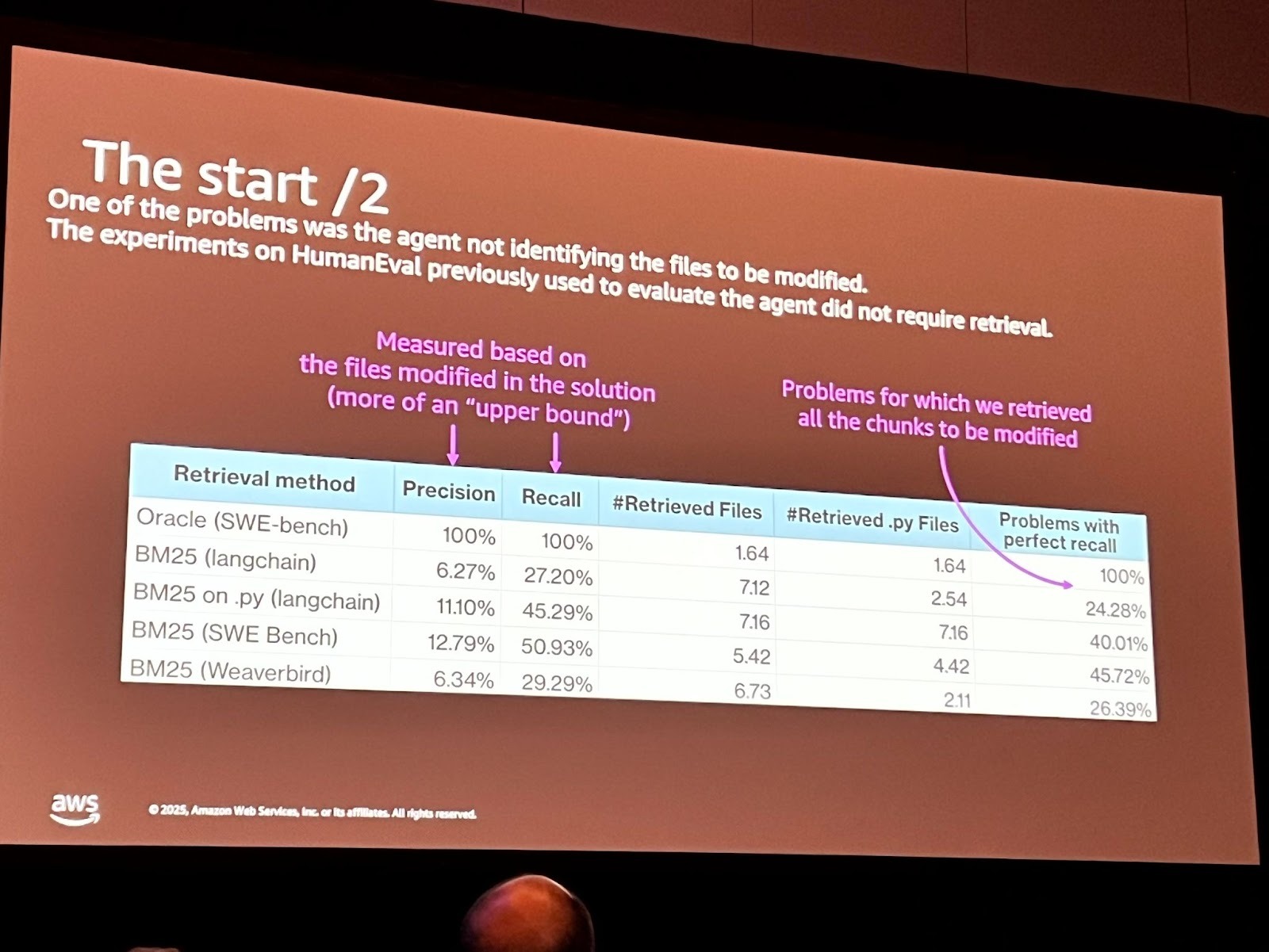 1. RAG(Retrieval-Augmented Generation) 시스템의 한계: 초기 시스템은 검색기(retriever)가 일부 코드를 검색하고 파일을 전달하는 방식인 RAG에 의존했습니다. 하지만 이 검색기는 관련된 파일을 올바르게 식별하는 데 어려움을 겪어, 실제 수정해야 할 파일의 절반 정도만 찾아내는 낮은 재현율(Recall)을 보였습니다.