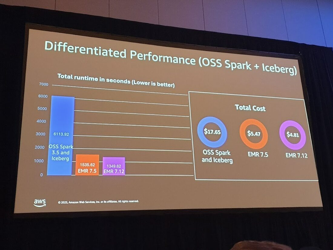 개인적으로 가장 인상 깊었던 점은 Spark 런타임 자체의 최적화와 거버넌스 통합을 통해 사용자가 코드를 변경하지 않고도 성능과 보안 혜택을 즉시 누릴 수 있게 되었다는 점입니다. EMR 7.12로 업그레이드만 하면 Iceberg가 4.5배 빨라지고 문자열 함수가 수십 배 빠릅니다.