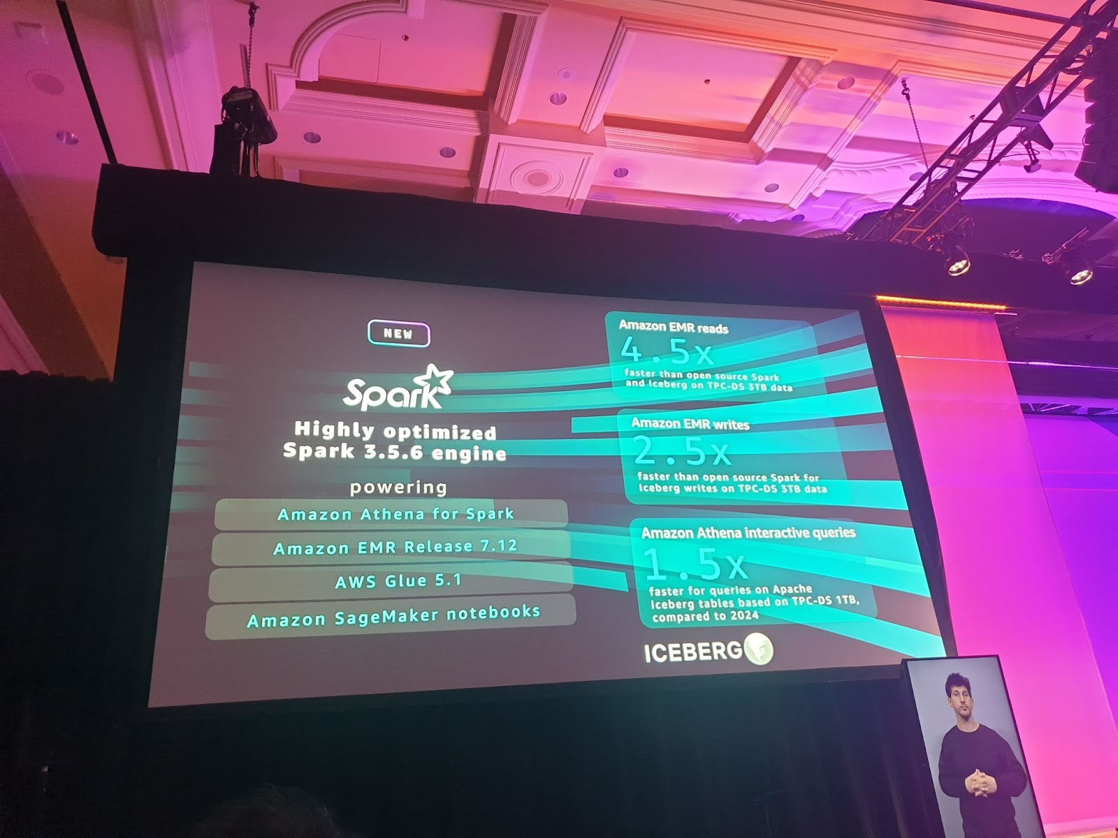 에이전틱 AI가 데이터 여정의 모든 단계에서 지원을 제공하고 있습니다. 이번 주에 EMR, Glue, Athena Spark, SageMaker의 새 노트북에서 고도로 최적화된 Spark 3.5.6 엔진을 출시했습니다. 특히 Iceberg를 사용하는 고객들에게 읽기 및 쓰기 성능이 크게 향상되었습니다.