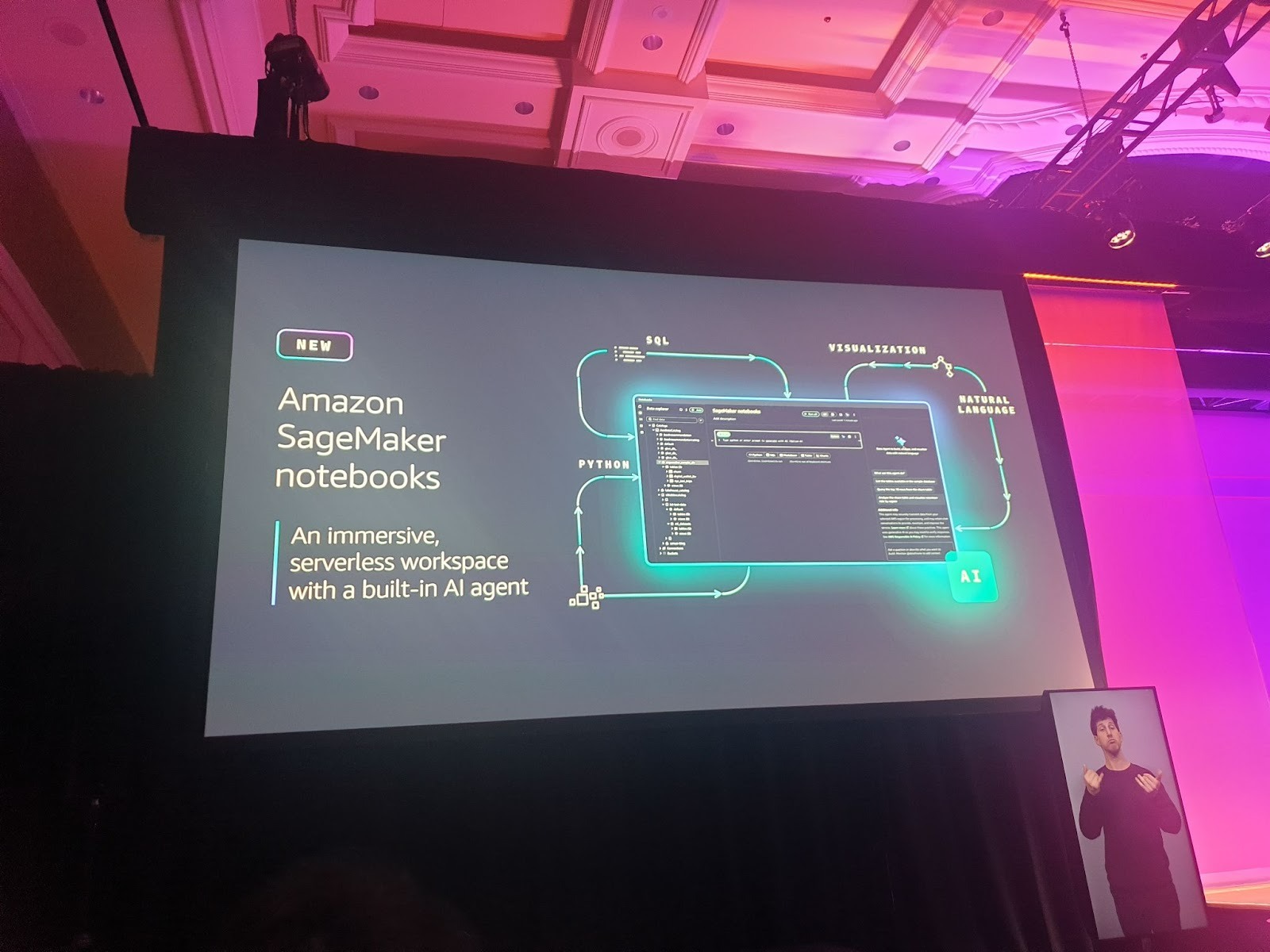 몇 주 전 출시한 새 SageMaker 노트북은 AI 기능이 직접 통합되어 있습니다. SQL, Python 또는 AI 지원이 내장된 자연어를 사용하여 한 곳에서 처리하고 분석할 수 있으며, 완전히 서버리스여서 인프라 관리가 필요 없습니다.
