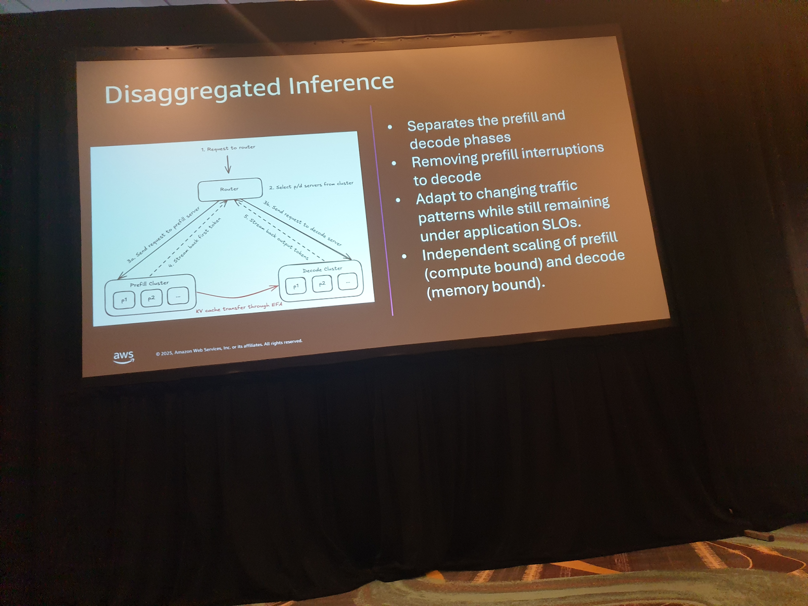 AWS의 DI가 가지는 이점은 EFA(Elastic Fabric Adapter)를 적극 활용한다는 점입니다. 고속 네트워킹을 사용하여 prefill 서버에서 decode 서버로 KV 캐시를 전송할 때 발생하는 네트워킹 병목 현상을 해결합니다. EFA는 가용 영역 내에서 사용 시 무료이며 빠릅니다. 또한 Zero Copy 기술로 KV 캐시를 CPU를 거치지 않고 디바이스에서 디바이스로 직접 복사하여 전송 속도를 더욱 향상시킵니다.