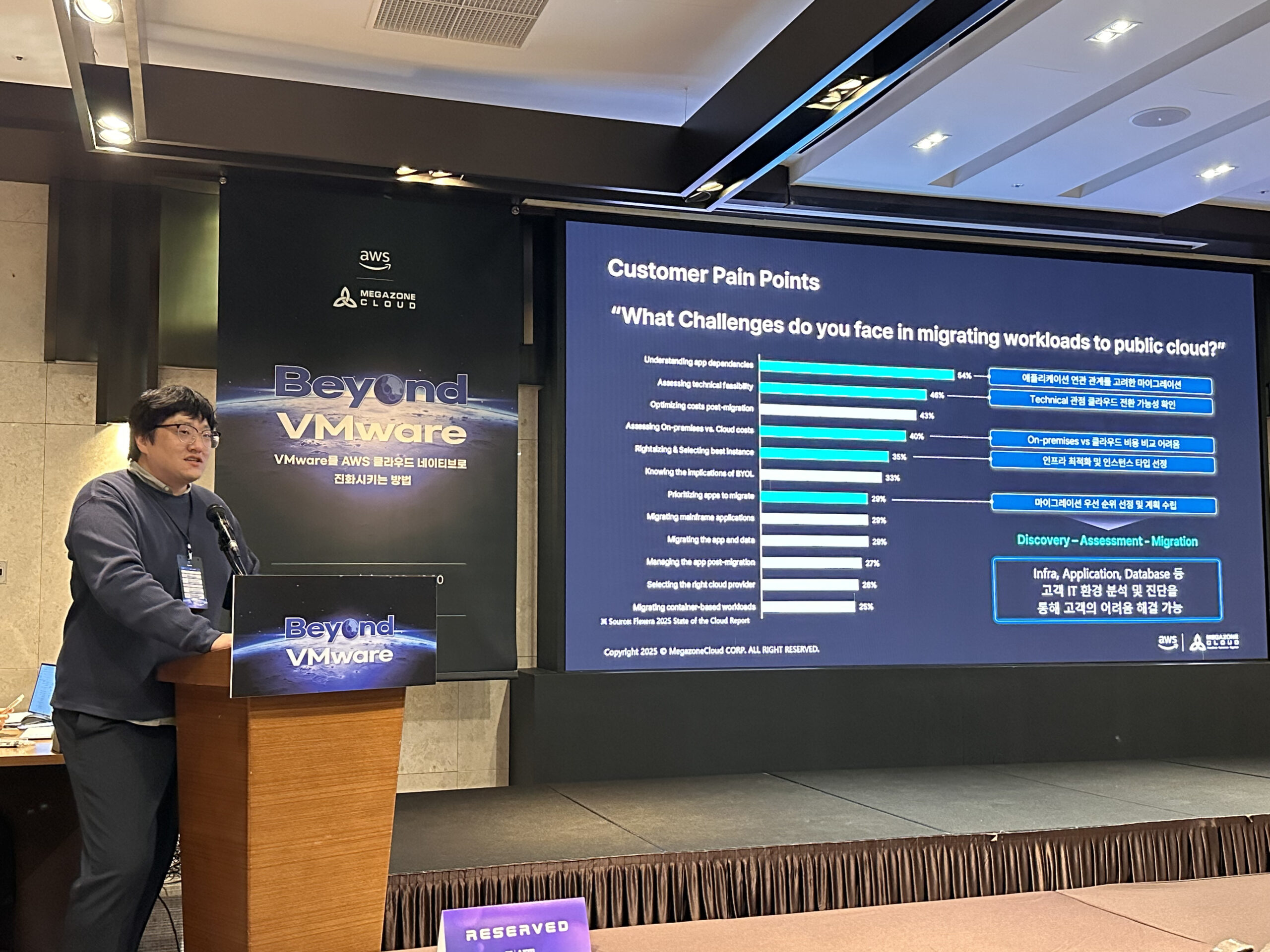 VMware 환경을 AWS 기반의 클라우드 네이티브 구조로 확장, 전환하는 실질적인 전략과 사례 중심의 이번 세미나, 그럼 지금부터 세미나 현장에서 나눈 인사이트를 함께 확인해볼까요? 🤓